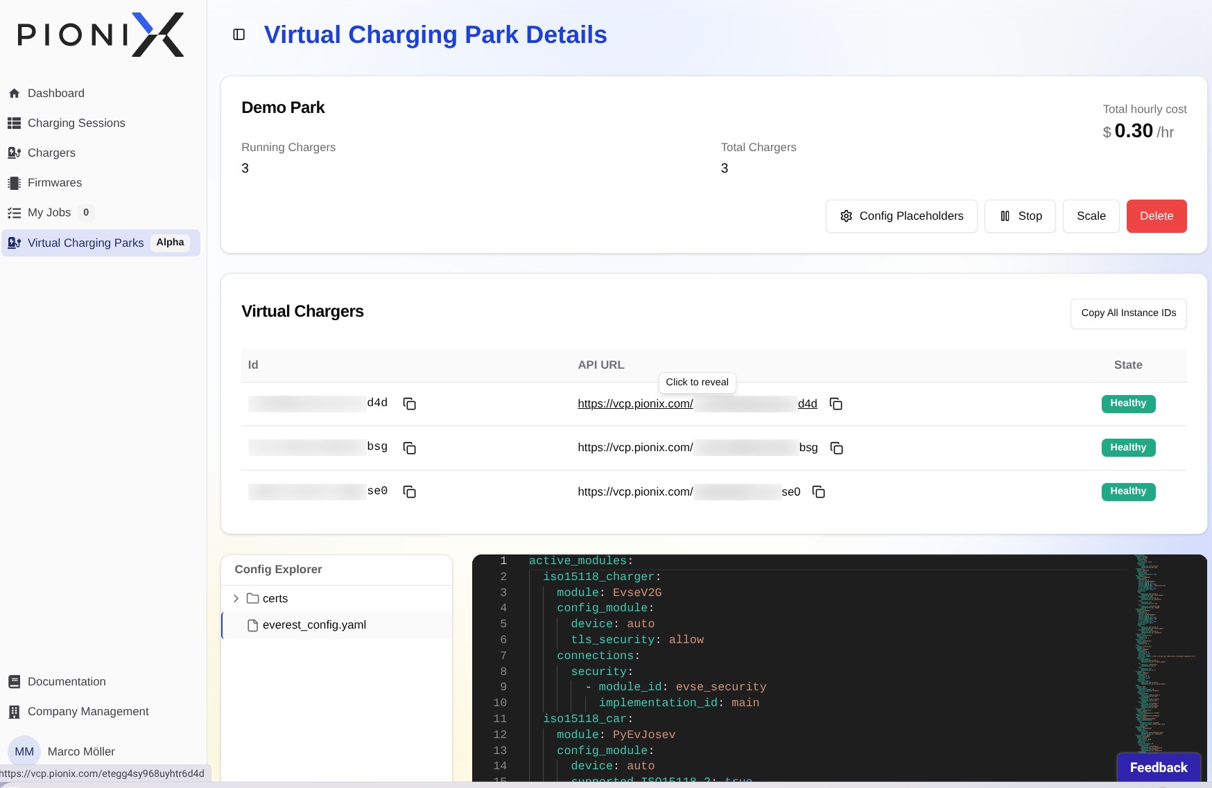 Stop relying on slow, manual hardware testing. The Pionix Virtual Charger Park (VCP) lets CPOs and CPMS vendors instantly spin up thousands of EVerest-powered digital twins for massive load testing, CI/CD automation, and real-world scenario validation.